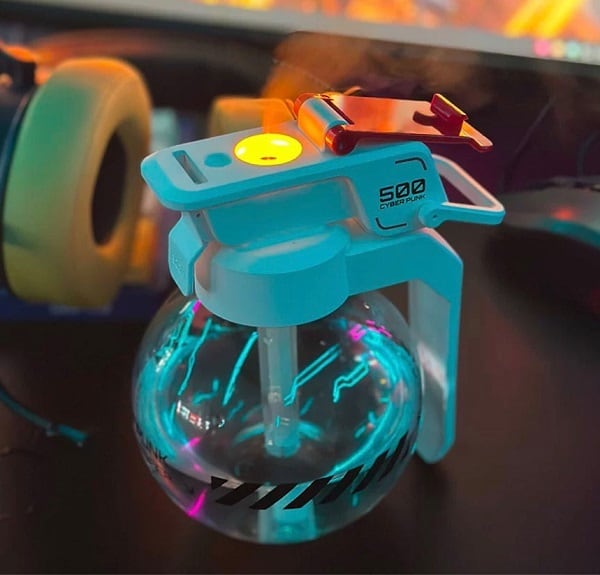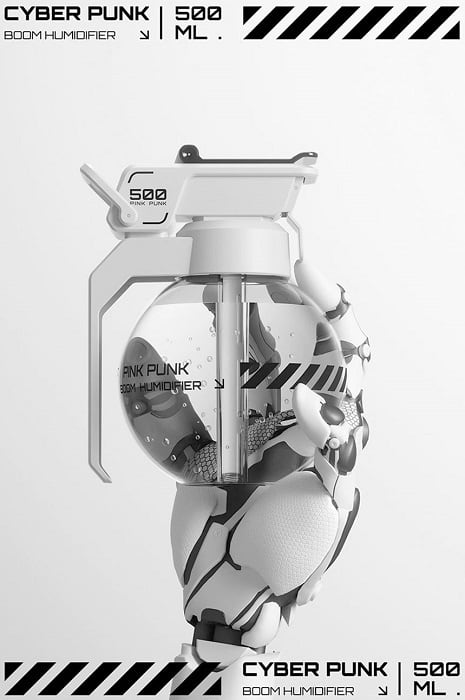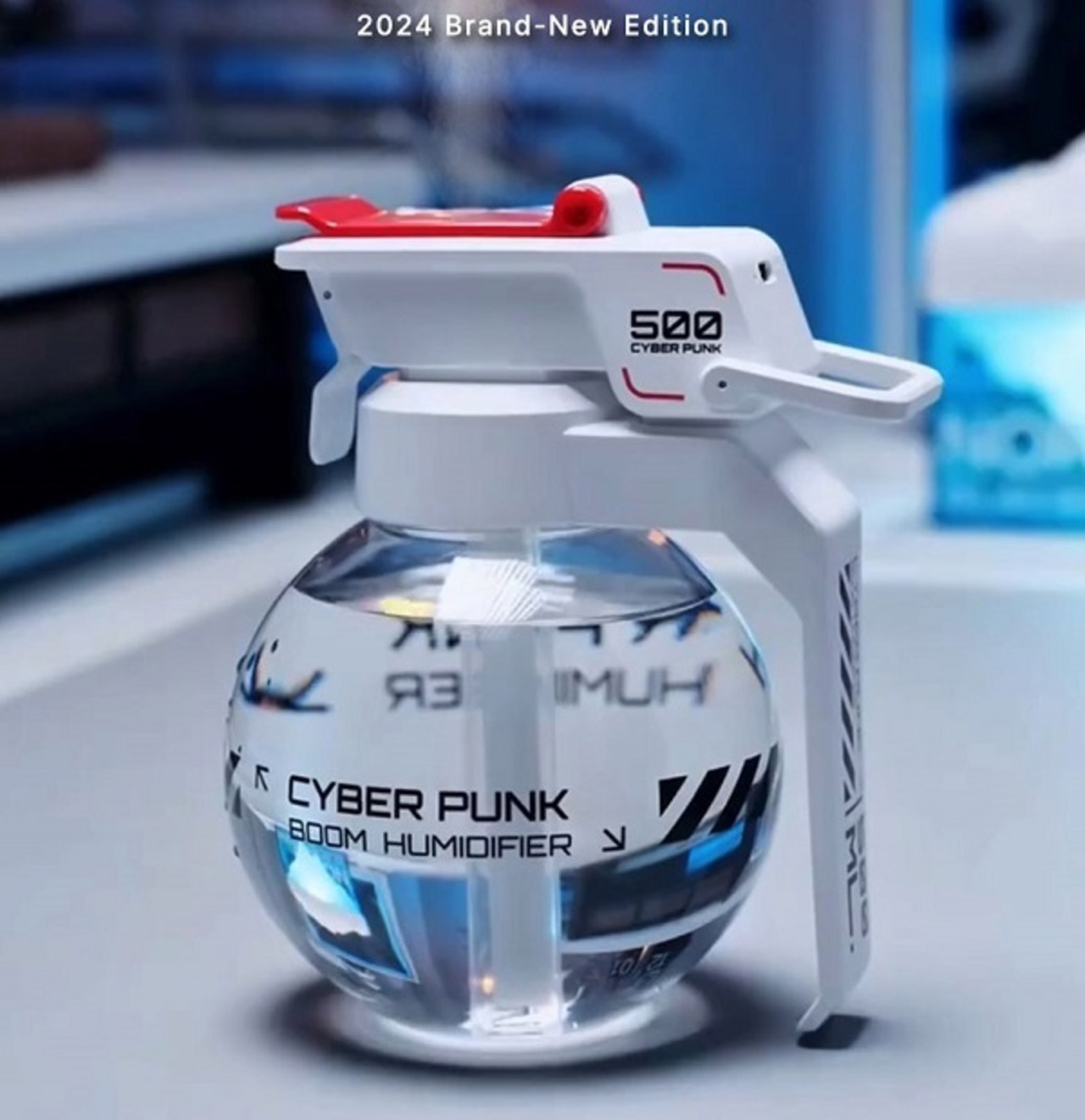 手榴弾型デザインの卓上加湿器で、超微細ミストを1時間60mlの速度で噴射します。吹出し口には手榴弾の雰囲気をさらに演出してくれるランプが付いています。スタイリッシュな3つのカラーよりお好きなカラーを選択してください。