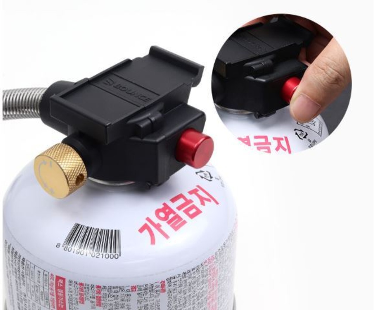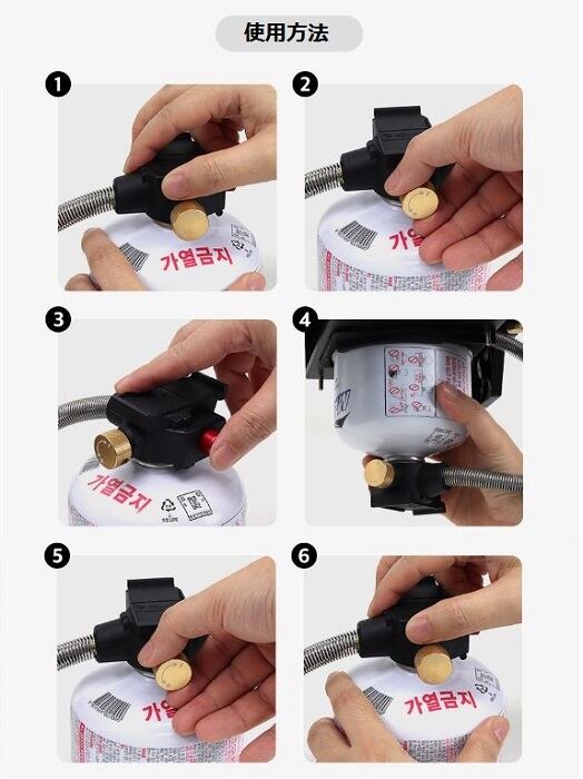 ①ガス容器をバーナー横に置き、IGTスタンドホースの蓋と連結します。