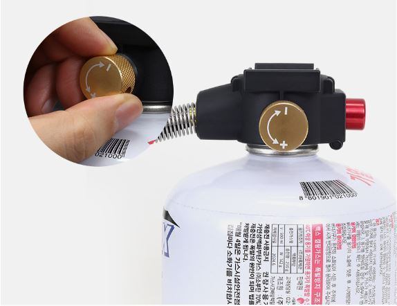 ⑤使用後は火力調節ダイヤルを、-方向に最後まで回して締めます。