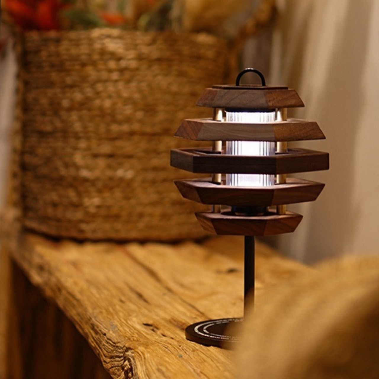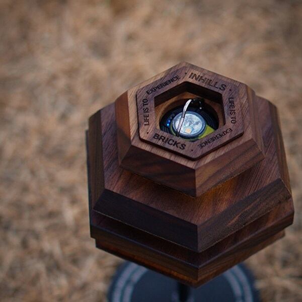 ハードウッドのウォールナットで製作し、原木の木目をそのまま生かした、優雅で高級感のあるランタンシェードです。