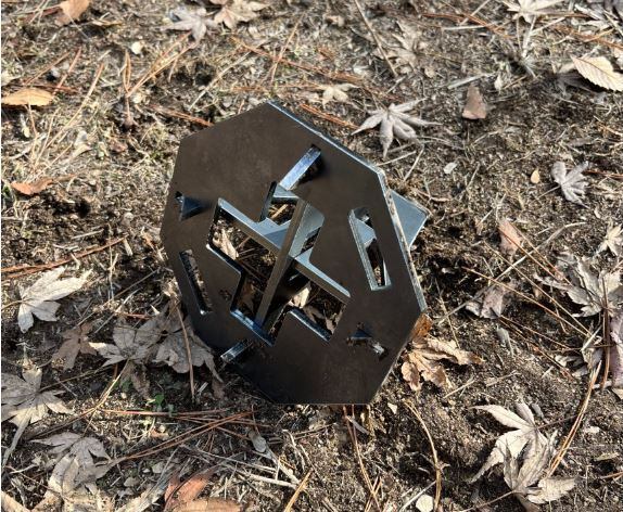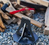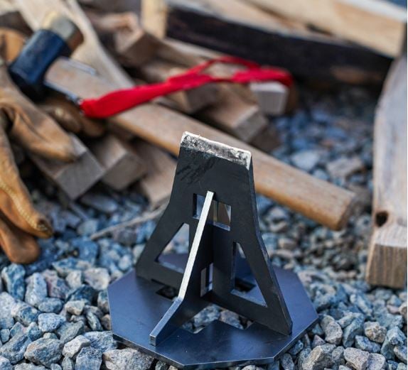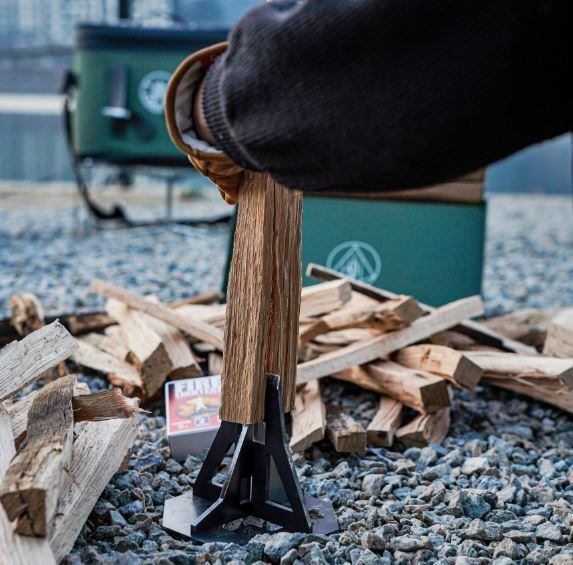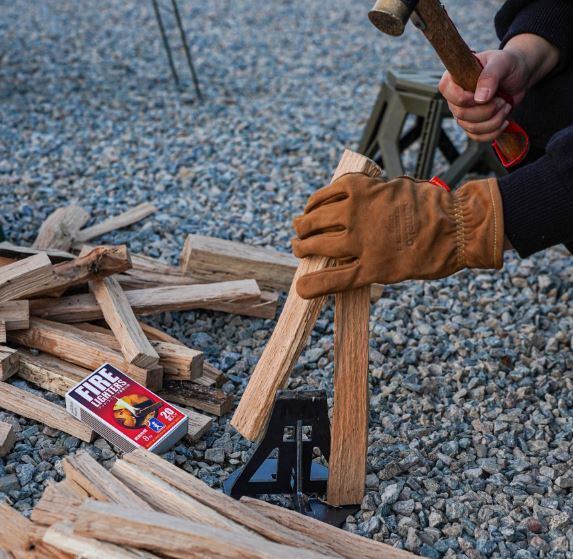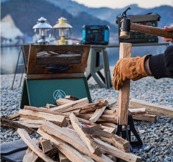韓国の鍛冶屋で製作したユニークな薪割り補助アイテムは、ミニマルで実用的なキャンプアイテムです。手軽に組み立てでき、解体も容易です。