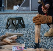 *重くて大きい薪には、刃が鋭い斧や重さがあるハンマーなどを使用することをおすすめします。