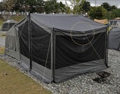 ・セットのタープに連結し使用するスクリーンウォールで、フルメッシュモードにでき、前室を拡張できるので便利です。280×300cmのゆったりサイズで拡張した前室空間を活用でき、休む時にはクローズモードにできます。