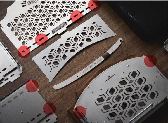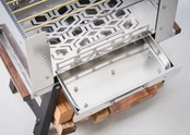 灰受けは3Tステンレス430仕様で耐熱性が高く、カーブデザインと上下スチール補強構造で熱変形が少ないです。