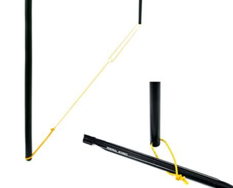 ハンガーのポールエンドの穴にストリングをはめたあとパックを利用して固定できます。