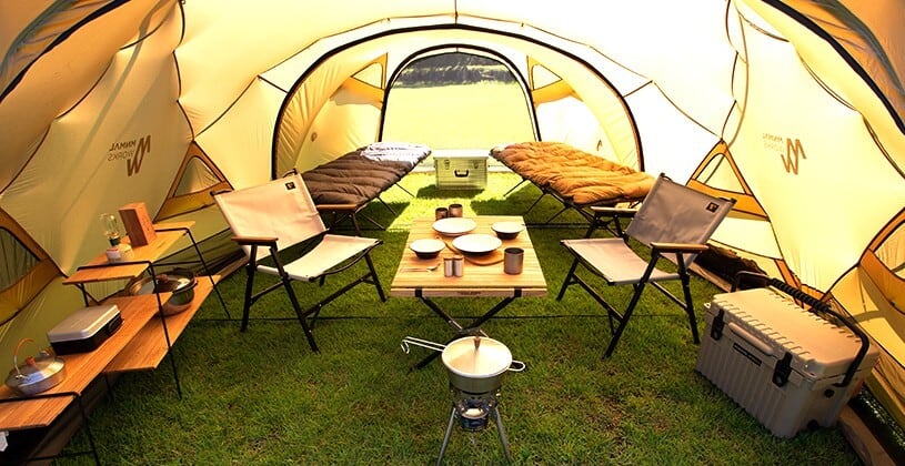 ミニマルワークスシェルターGベスティビュールは従来のシェルターGに簡単に結合できます。荷物を置いたり簡単な調理できる前室空間ができ、寒さや風を和らげて居心地の良い空間を作ります。