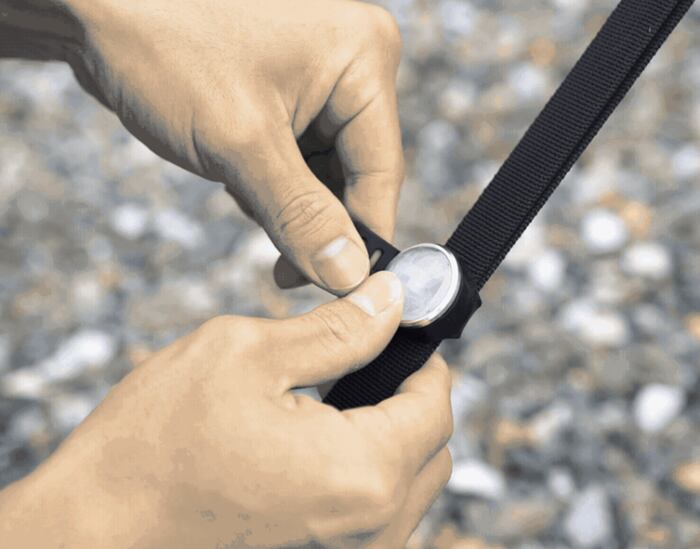 タープやテントのロープやベルトの位置をわかりやすく照らしてくれるLEDウェビングライト
