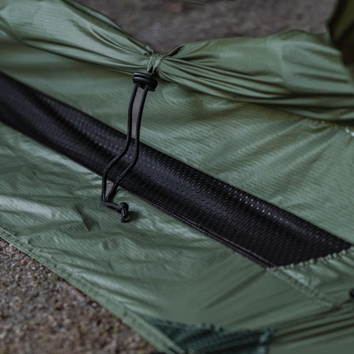 Air Silリップストップ40D PU2,000mm生地は、軽量で伸縮性と耐久性に優れ、防水機能もあり、雨天時でも使用できます。*雨天時には必ずルーフフライをご使用下さい。