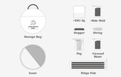 素材:150Dポリエステル オックスフォード (フライ使用時:耐水圧2000mmH2O)/ポール-FRP
