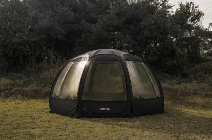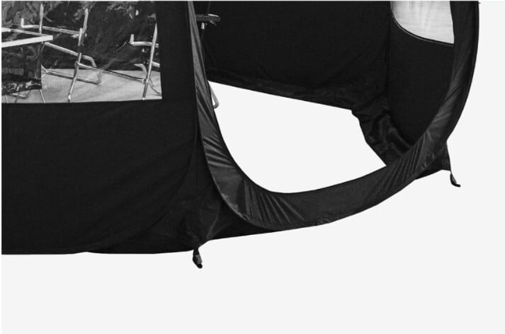 ポップアップ形式で設計されたCAMVILのホバクシェルターは、ポールの連結が不要で、簡単に広げるだけで手軽に素早く設置と解体ができ、キャンプの準備と撤収がより効率的で便利に行えます。