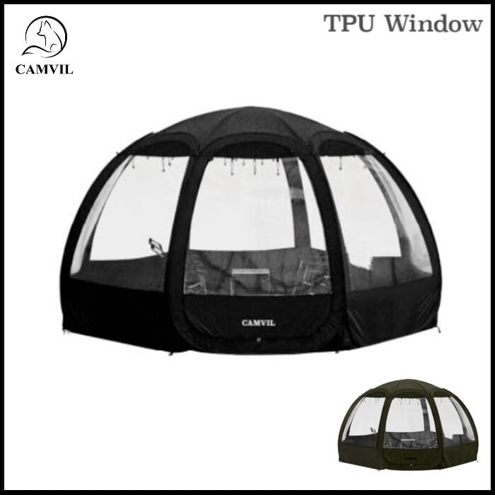 CAMVILのホバクシェルターTPUは、広い内部空間と高い天井でキャンプの時間を快適に過ごせます。360°のTPU窓は開放感にあふれるだけでなく、雪や雨などを防いでくれるので、悪天候でもテントの中から外の景色を楽しめます。ポールの連結が不要な簡単なポップアップ式で誰でも手軽に素早く設置&解体できます。追加購入のサイドウォールを付ければ、プライバシーも保護できます。