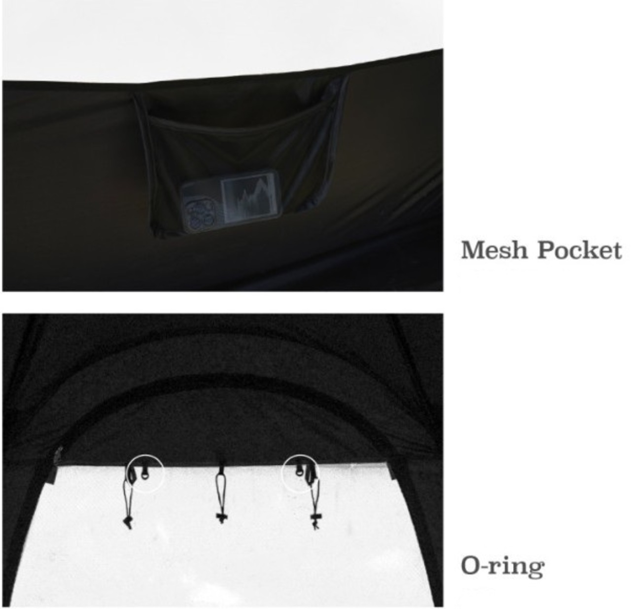 内部にメッシュポケットやマルチOリングがあり、ランタンをかけたり、追加購入のサイドウォールをかけたりできます。