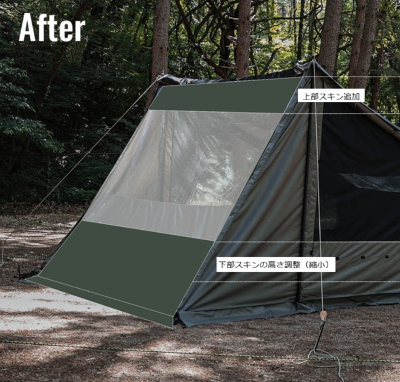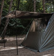 スクリーンウォールの前面部につなげて使用するベイカーエアーテント2P専用ウレタン窓です。全体的なテントのディテールと開放感を生かしたデザインで製作しました。