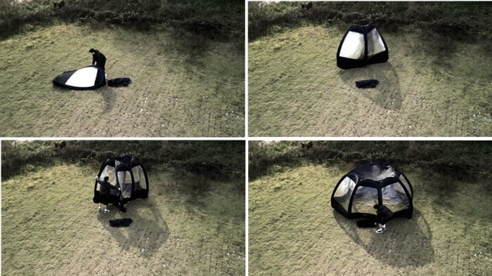 ポップアップ形式で設計されたCAMVILのホバクシェルターは、ポールの連結が不要で、簡単に広げるだけで手軽に素早く設置と解体ができ、キャンプの準備と撤収がより効率的で便利に行えます。