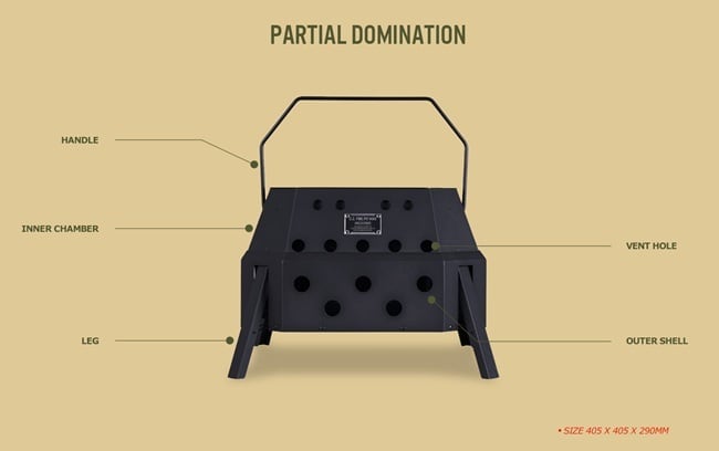 また、独自開発したバランスカット設計と耐熱・耐錆性のサーモシールド加工で、長時間使用しても、高熱による変形や変色を最小化し安定的に使用できます。表面はマットなJETブラックカラーでワイルドに演出し、Cargo Container特有のラインとディテールを生かして、存在感のあるデザインで製作しました。