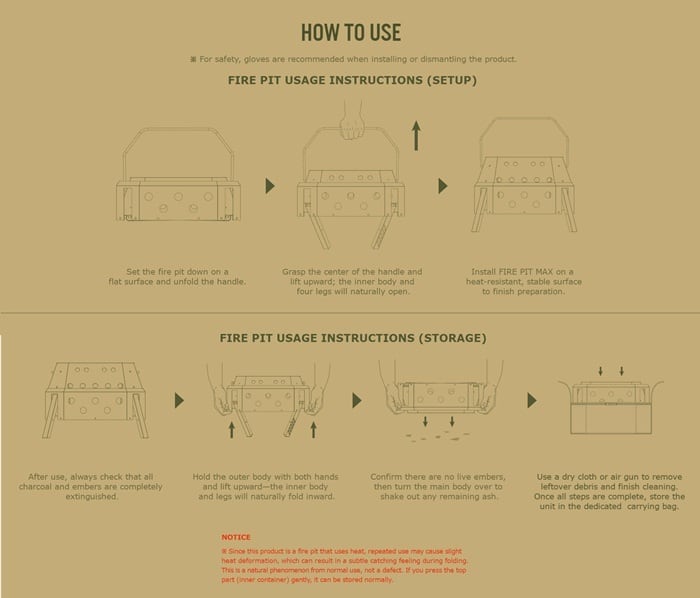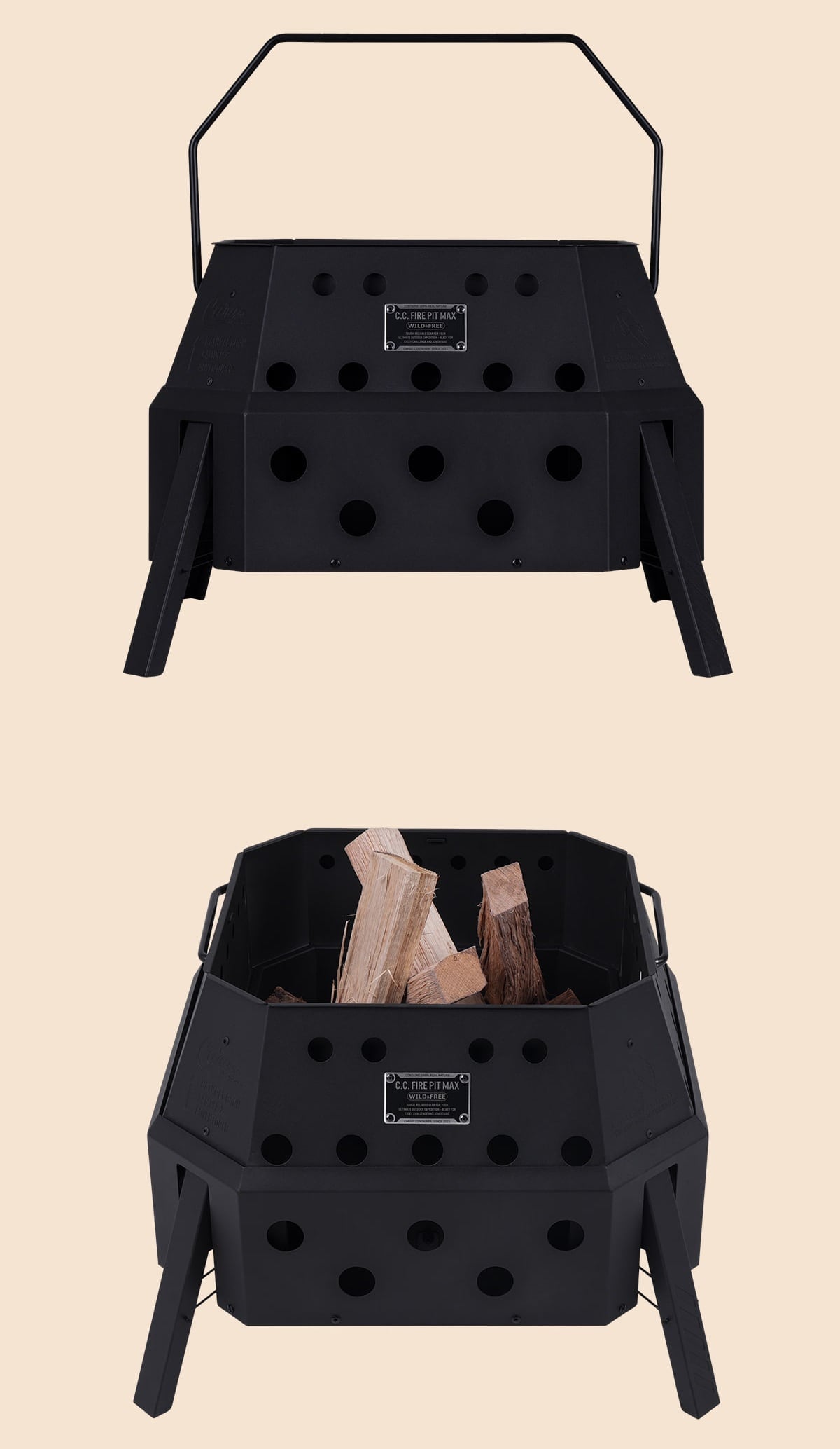 CC FIRE PIT MAXは、ワンアクションで設置&収納ができ、初心者でも使いやすい焚き火台です。二重燃焼で燃焼効率を極大化し強力で安定的な火力を維持し、出す煙を最小化します。