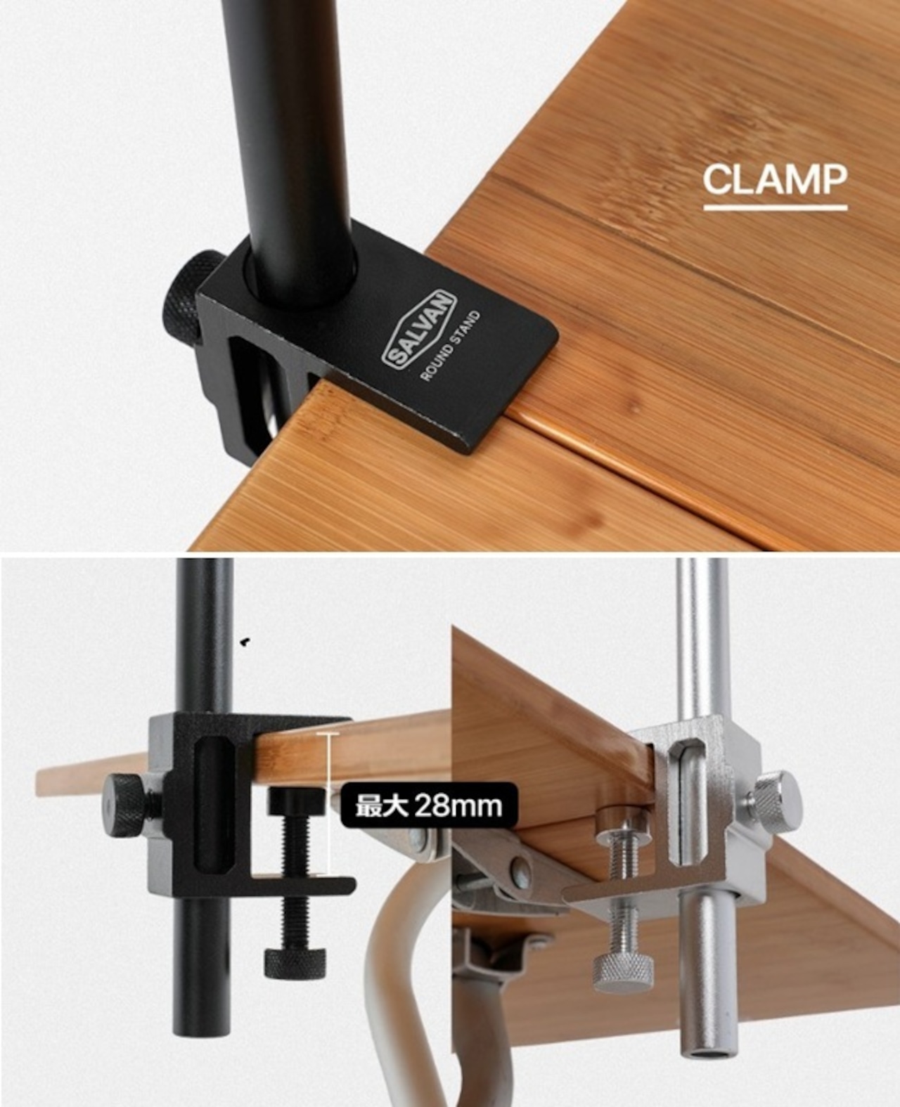 ・アルミニウムクランプで最大28mmの厚さのテーブルにしっかりと設置できます。