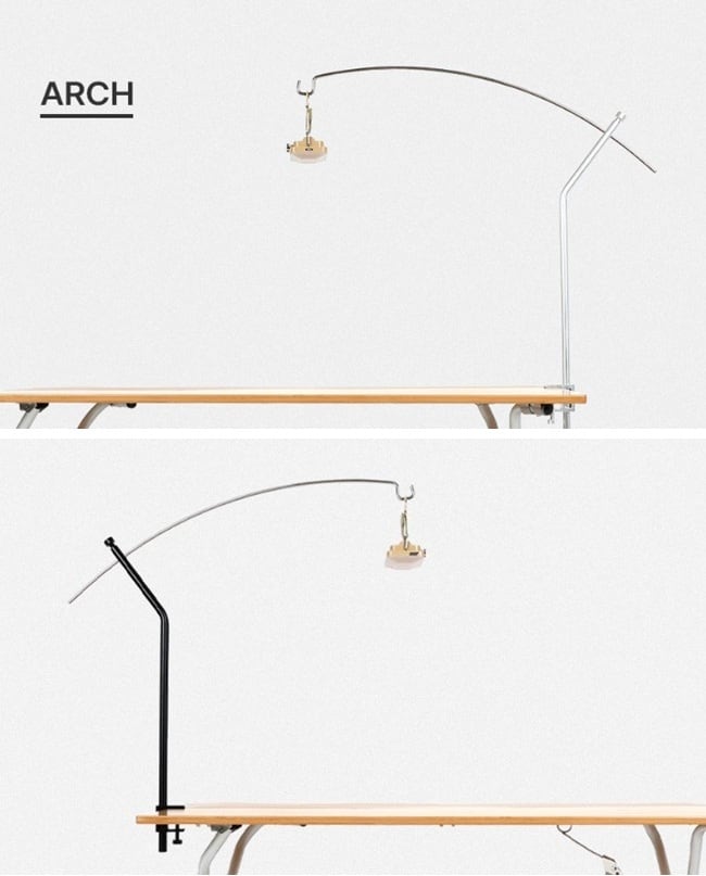 ・アーチ型でテーブルの角に設置できて場所をとらず、テーブルの上を広く活用できる安定的な照明アイテムです。