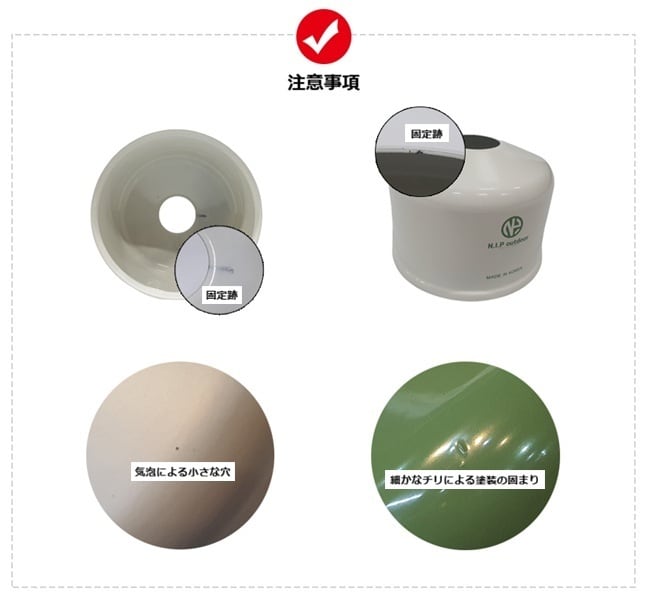 ・塗装工程上、固定して塗装した跡は必然的に残るもので不良品ではありません。