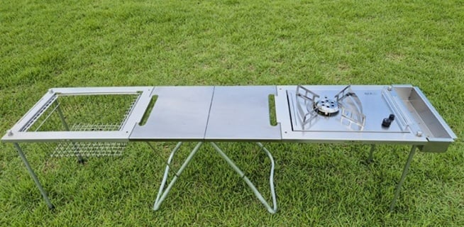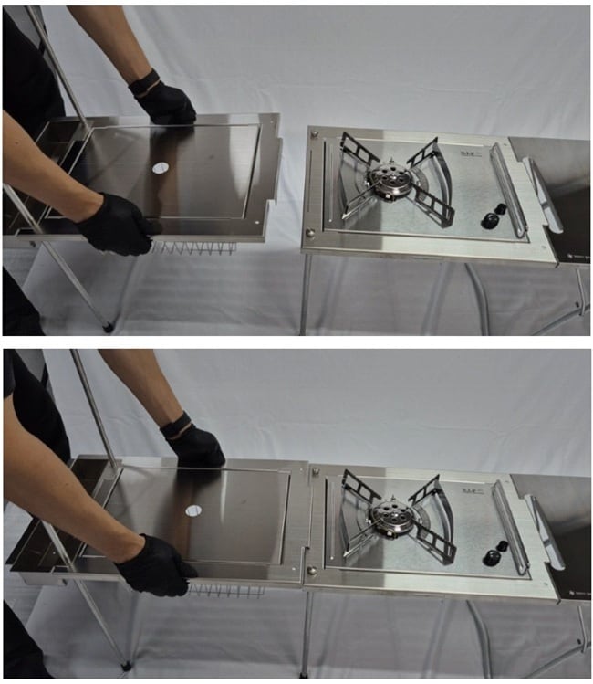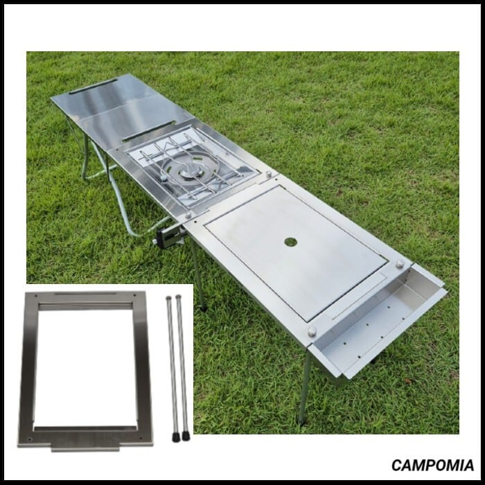 *本製品はスノーピークマイテーブルに互換可能なCAMPOMIAスマテIGTセット(天板フレーム+脚)です。バーナーやトレー、テーブルなど演出用の小物は製品に含まれません。