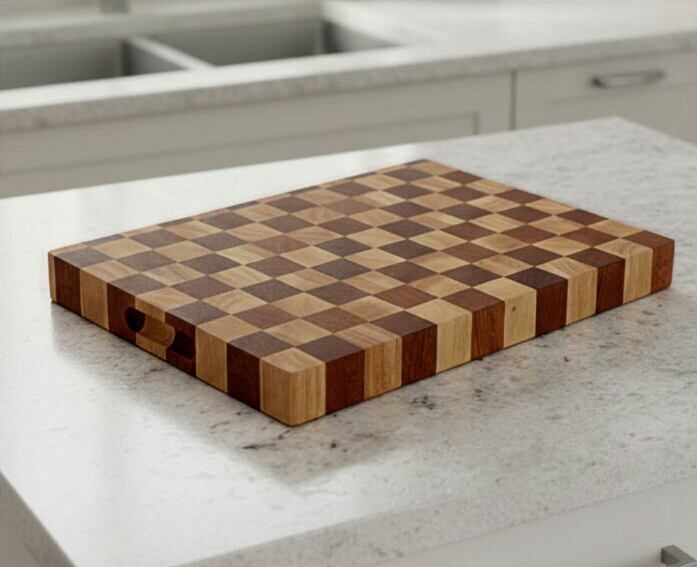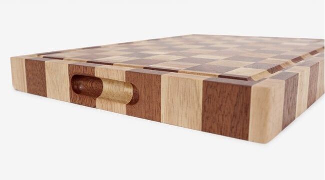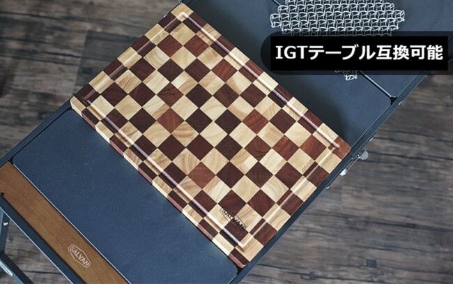 エンドグレインカッティングボードはデザイン性が高く、高級感にあふれ、お手持ちのキャンプアイテムとも馴染みやすいだけでなく、表面を調理用、裏面をプレーティング用として使用できる実用的な両面デザインです。