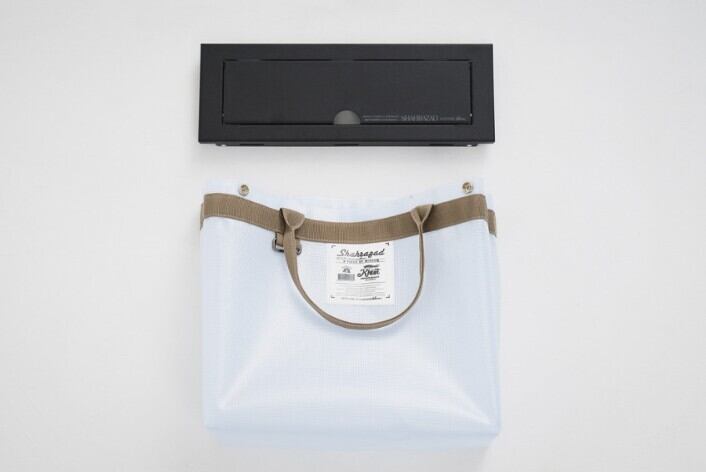 PVCバックとステンレスの蓋はボタン式で容易に取り付けられます。また、ビニール袋などをかけて使用する時は、ボタン部分に磁石を付けて固定できます。