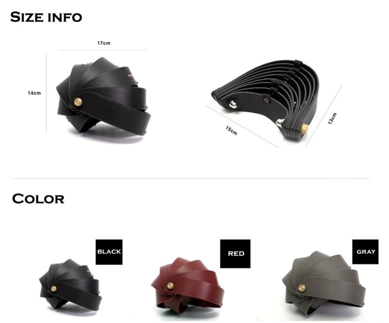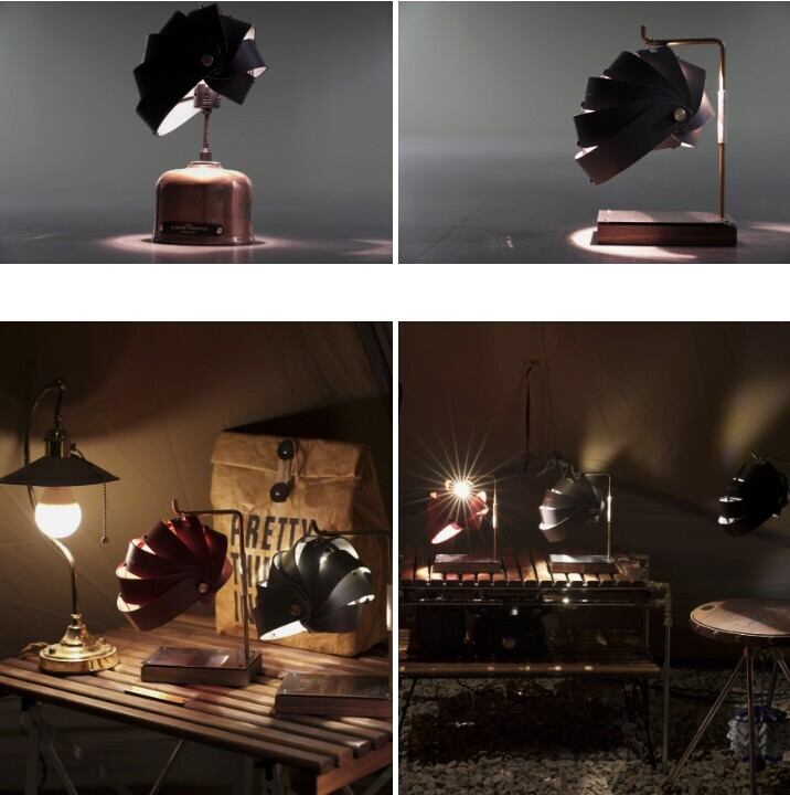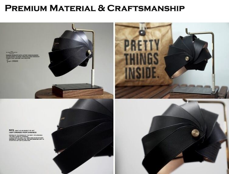 イタリア産ベジタブルレザーで製作したNXYレザーシェードは9枚の層で構成し、収納や携帯性を考慮した折り畳み構造になっています。