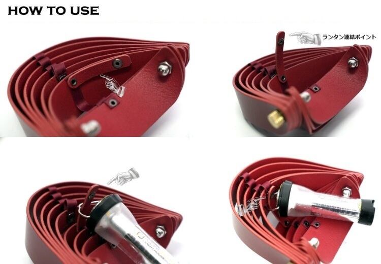 ゴールゼロランタンを基準に製作し、シェードの内側にゴールゼロランタンをかけ、スナップボタンで固定し、シェードを広げて使います。