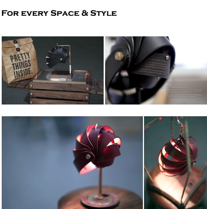牛革が作り出す曲線の陰影。重なる層が生み出す優雅な明かり。指先から伝わる高級感。照明ではなく1つの造形オブジェ”NXYレザーシェード”は、光を持ち運べる新しいシェードです。