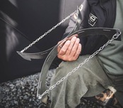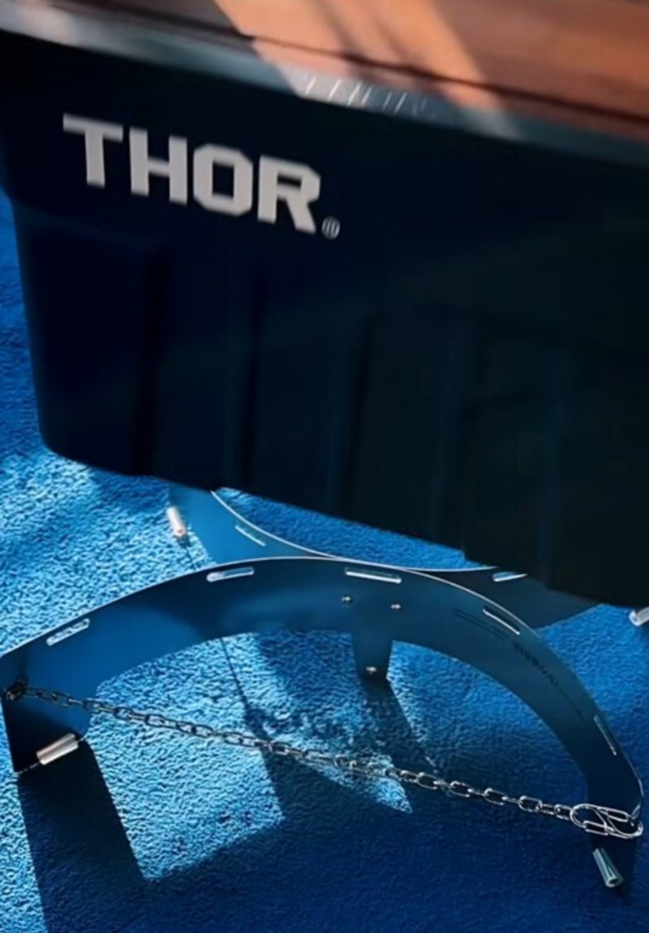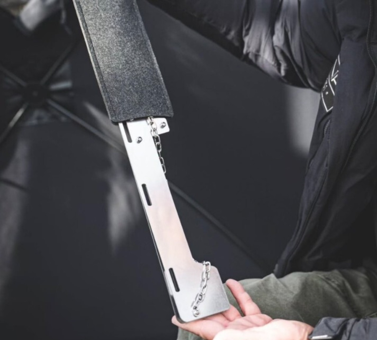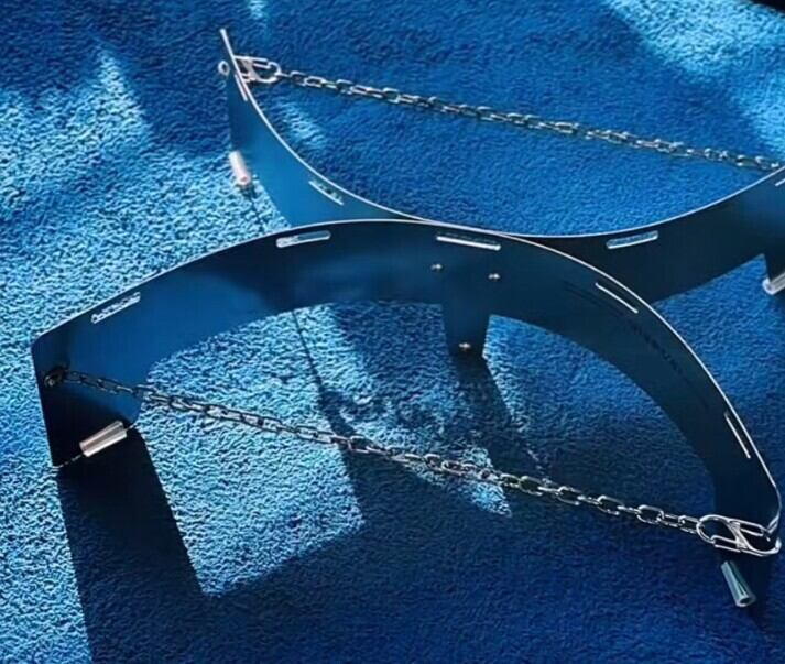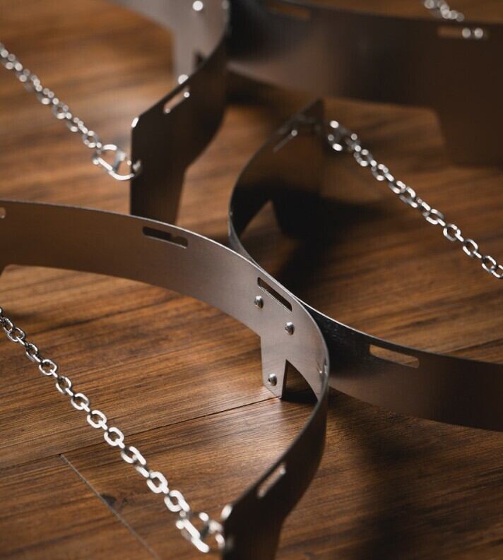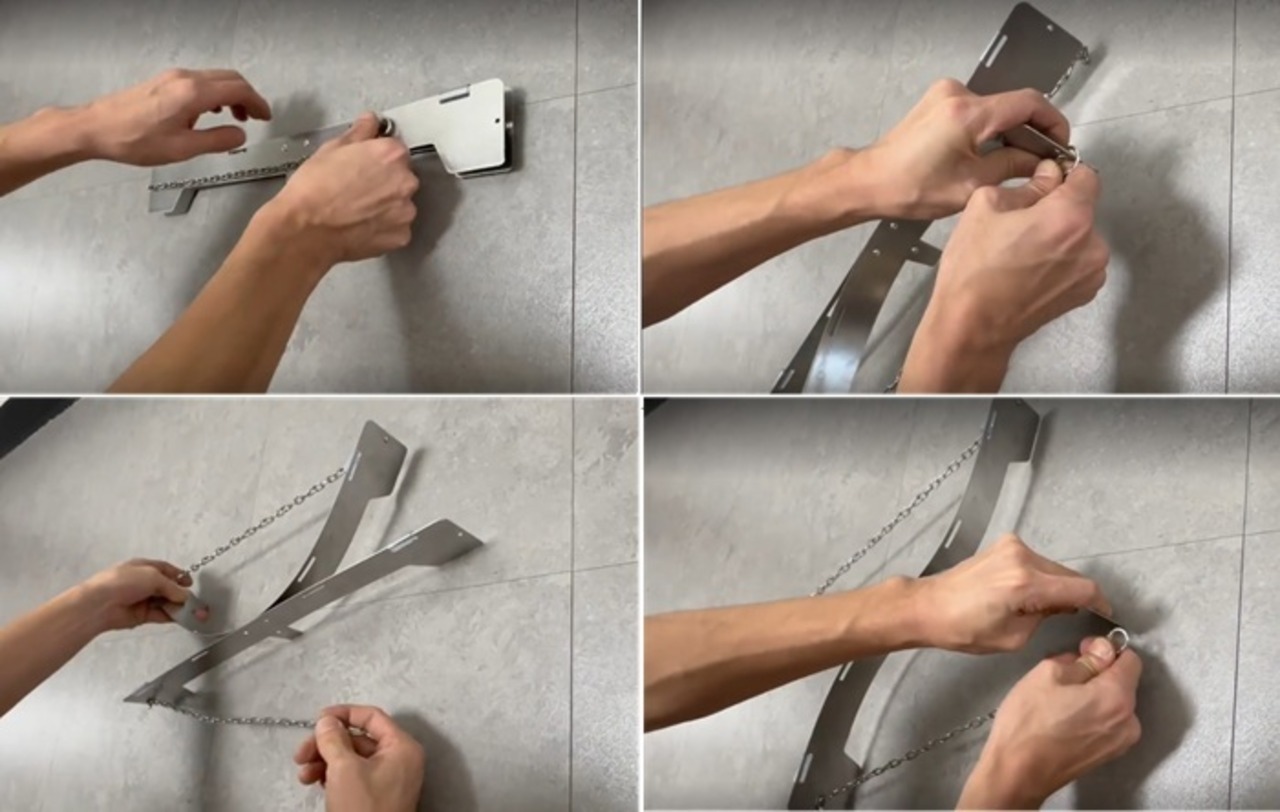チェーン部分を調節すると、形を長方形~正方形に変えられます。既存のスタンドに比べて接地面積が増え、ぐらつきが大幅に抑えられます。