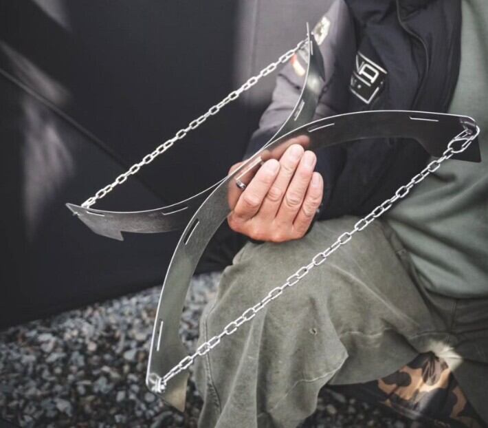 ユニークなスタイルのキャンプスタンドです。フレキシブルステンレスを使用してフラットな収納をサポートします。