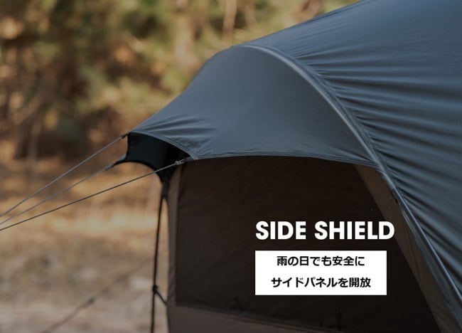 ・テント内部の円滑な空気循環を実現するため、ルーフと両側面のベンチレーションで結露防止と内部の空気循環を促し、快適な室内空間を作り出します。