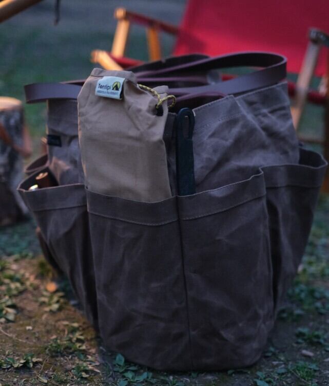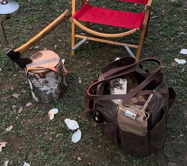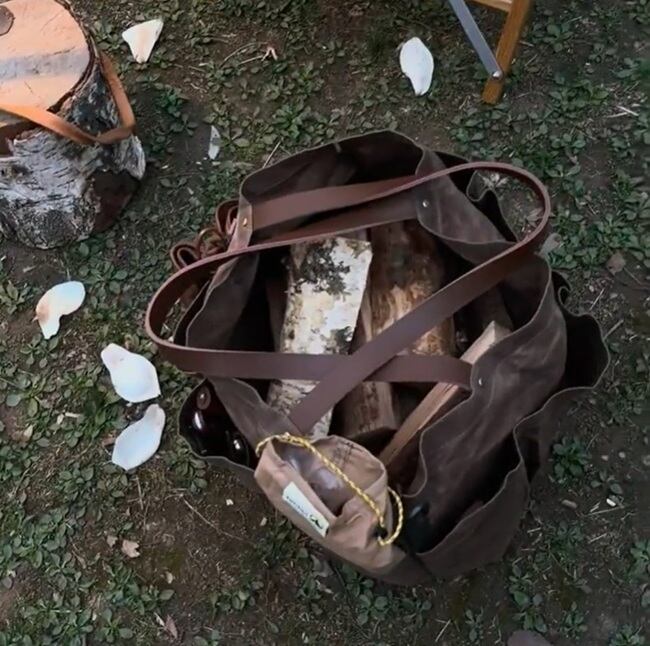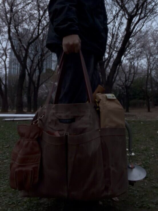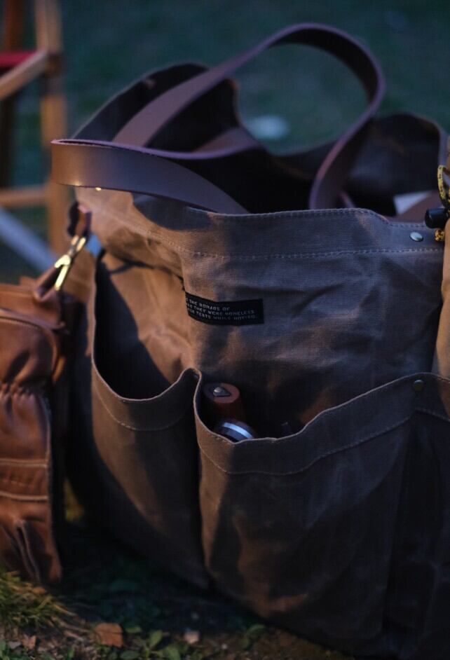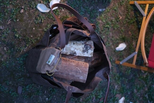 イメージ写真では薪入れカバンとして使用しましたが、キャンプで必要な色々な物を入れて使用できます。