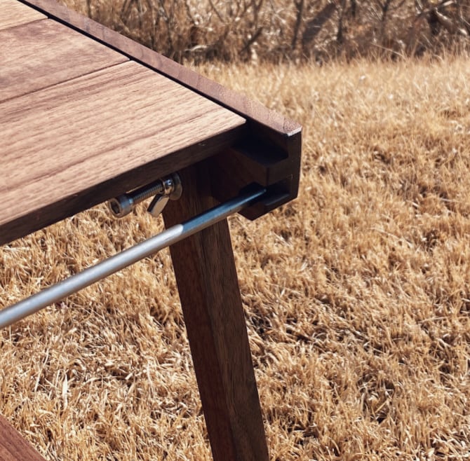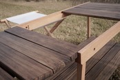 ④最後の両側脚の支えと天板1つをボルトで結合してテーブルが完成です。(12番目の写真参考)