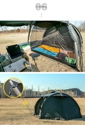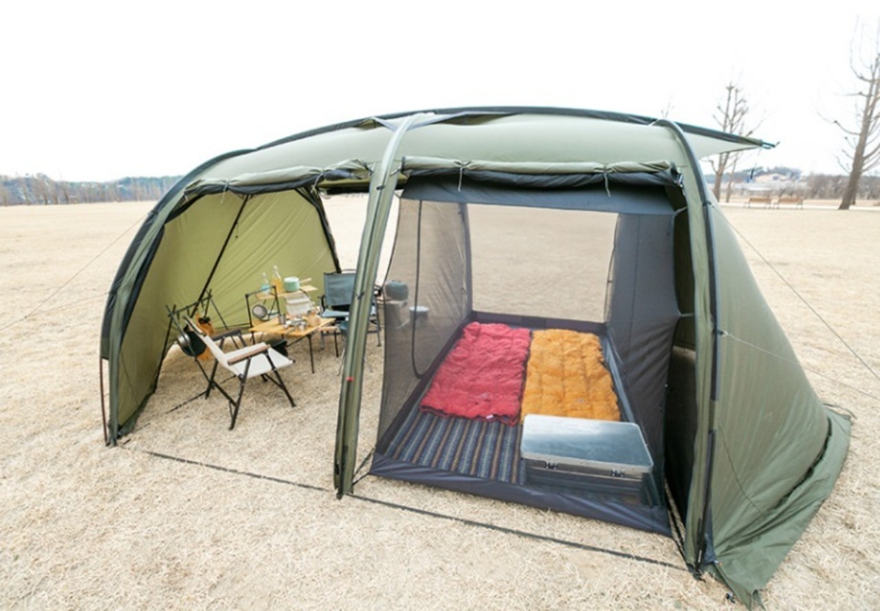 インナーテントを締結すれば2人で使うのに適した空間分離型テントで活用できます。リビング空間と寝室空間に分けて、必要に合わせて簡単に着脱が可能です。