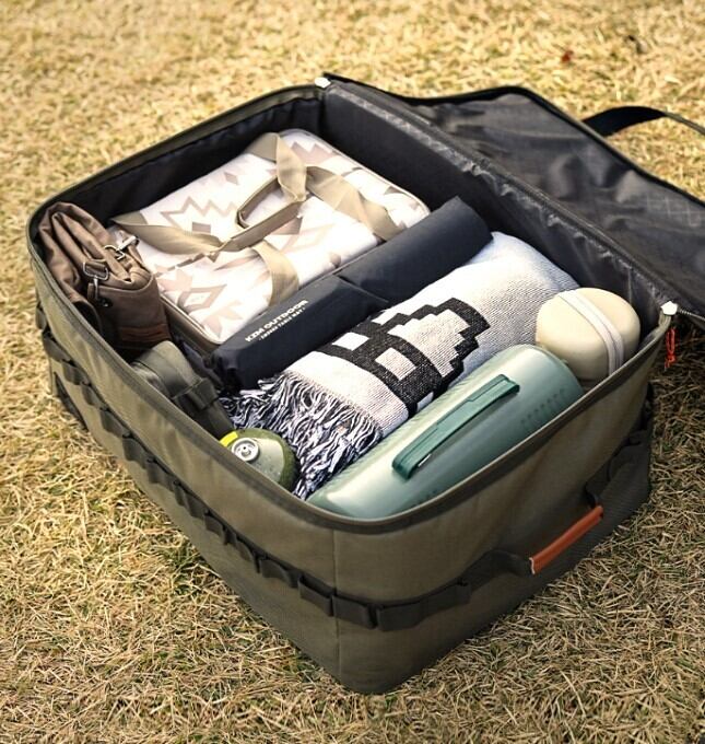 80Lの大容量収納空間に色々なキャンプアイテムを