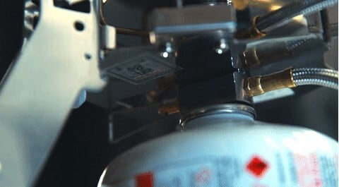 液出し使用時、230g、450gイソガスを容器固定レバーで