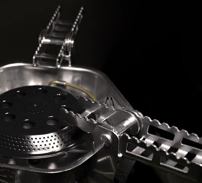 折り畳める五徳は、様々なサイズの調理道具を安定的に