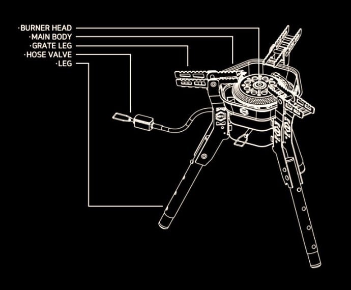 折り畳める五徳は、様々なサイズの調理道具を安定的に