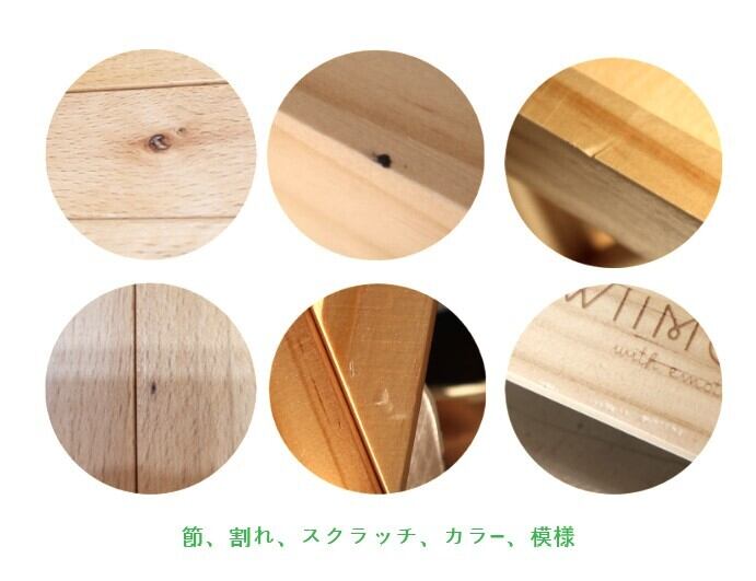 節、割れ、スクラッチ、カラー、模様等は、原木の特性であり