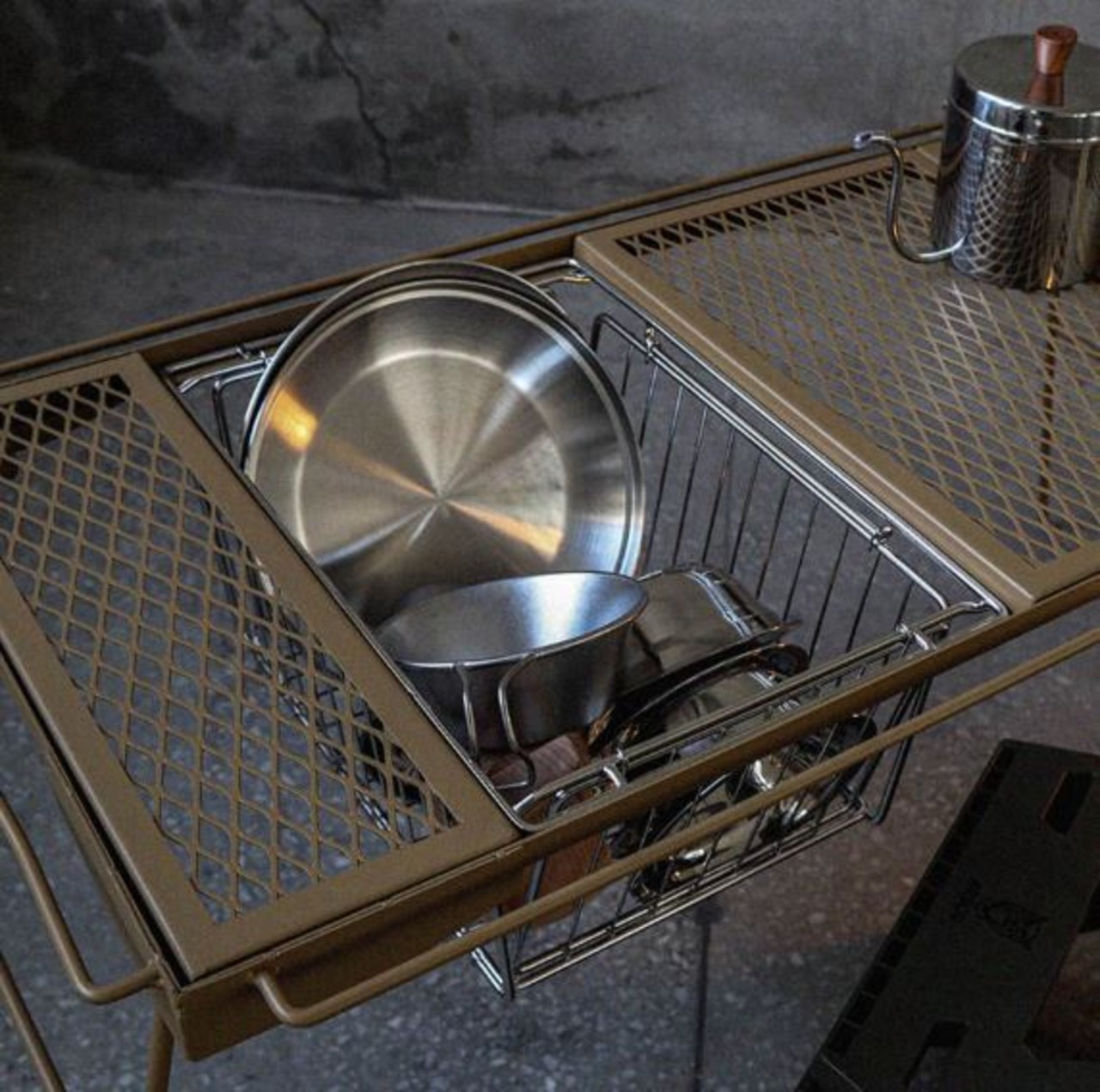 【再入荷】キャンプ ワイヤー 折り畳み ステンレスバスケット 折り畳みかご IGTテーブル(About camping)