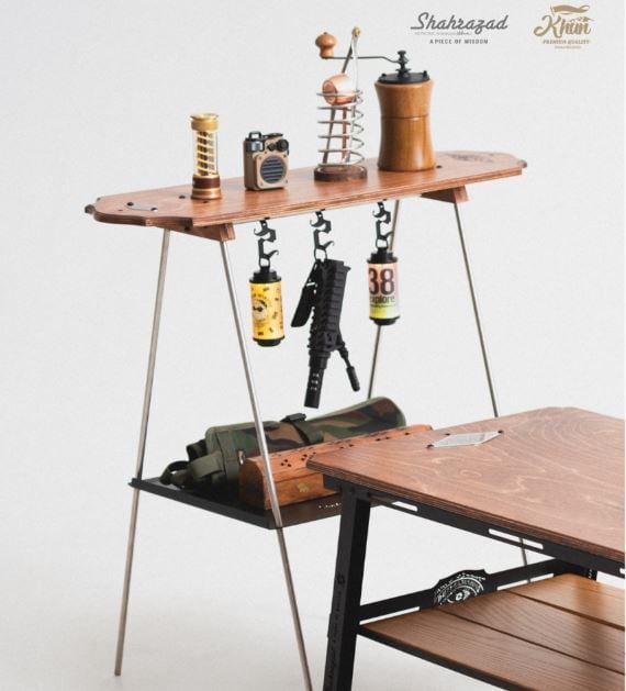 ABLE シェルフ&ハンガーテーブル キャンプテーブル ウッドシェルフ1段テーブル(Shahrazad)