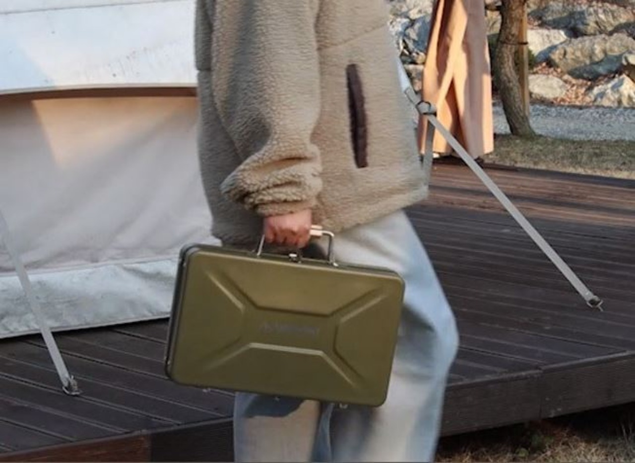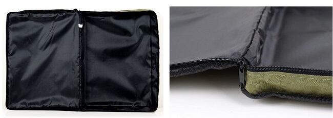 2つのジッパーで180°開くので、ラブリー焚き火台を出し入れしやすいです。両面の内蔵フォームで安全に保管し、持ち運べます。