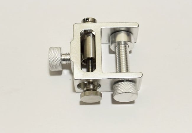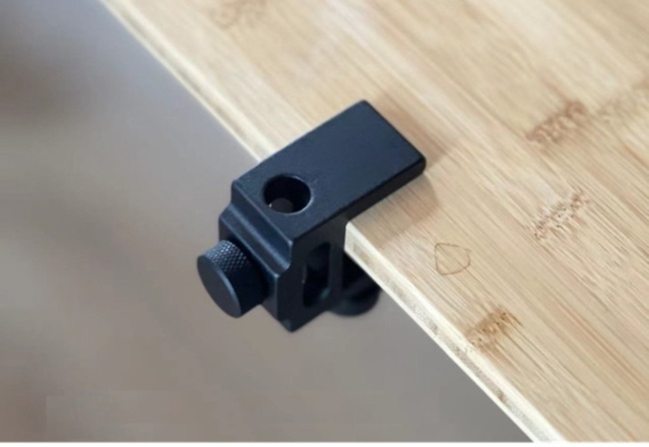 穴が直径5mm未満、または穴のないテーブルの場合、テーブルの天板の厚さが3cm以下であれば、互換クリップを利用すると設置することができます。(写真13.14.15)