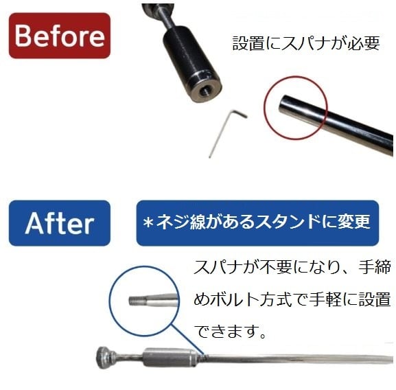 ネジ線があるスタンドにアップグレードされて、手軽に設置できるようになりました。
