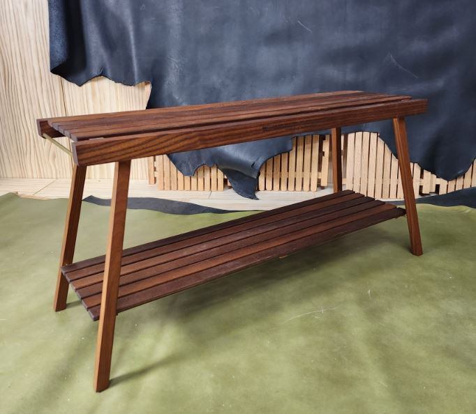 炭化アッシュで製作、コンパクトなサイズで、幅は狭く、横に長く作って、色々な活用ができるだけでなく、収納もしやすいシェルフです。