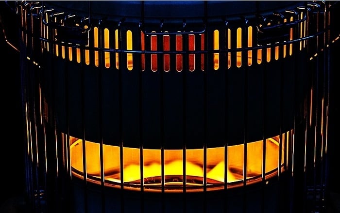 既存の対流熱だけでなく、耐熱ガラスのサラウンド透視窓を