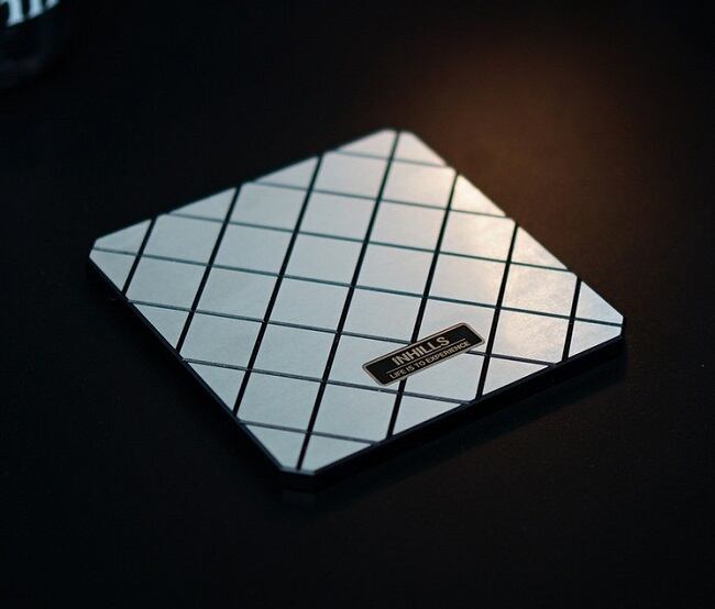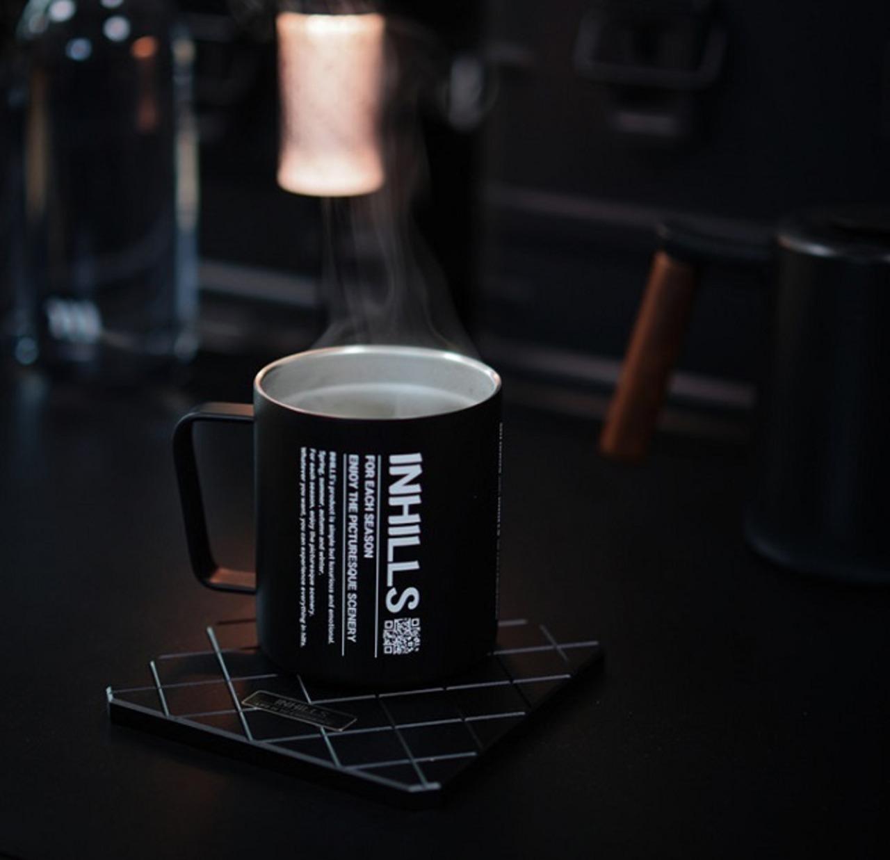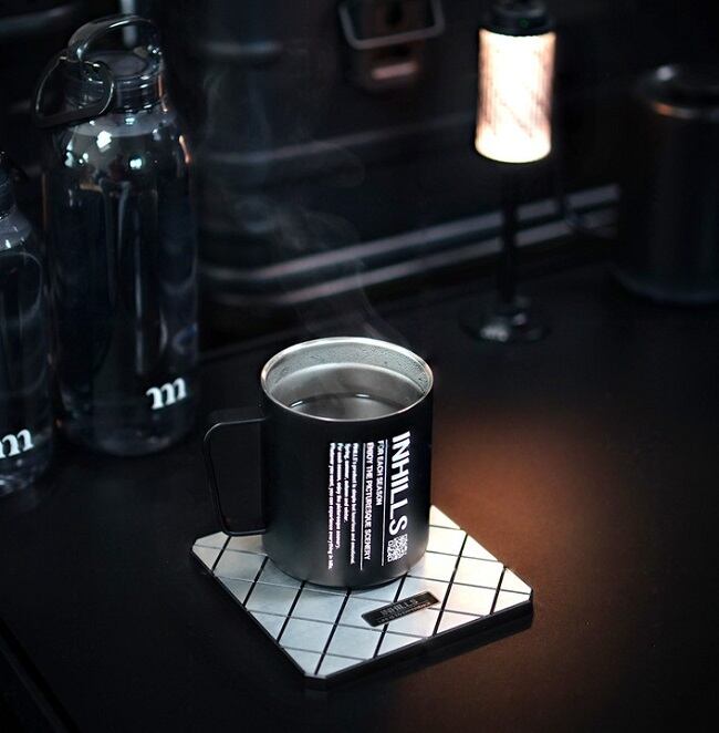 ワンポイントのロゴプレートと斜線Vカットデザインがシンプルで、スタイリッシュなコースターです。