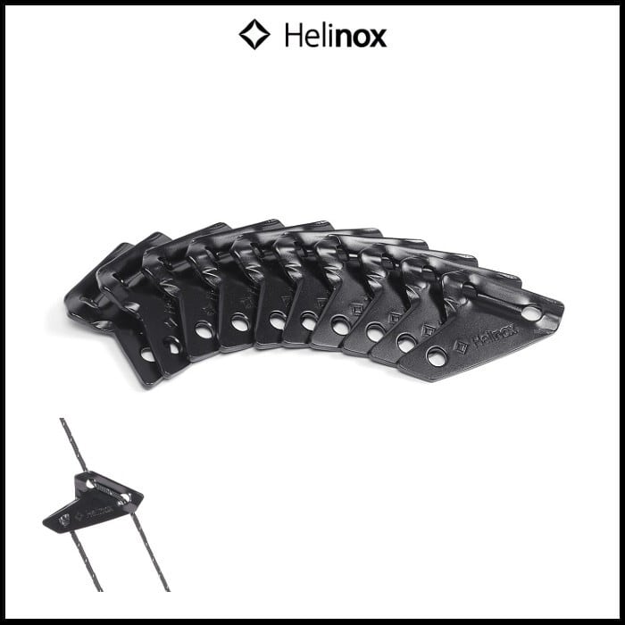 ヘリノックスストッパー3mmです。10個1セットで、テントのガイラインやタープの固定、または形の変形など、様々な活用ができます。