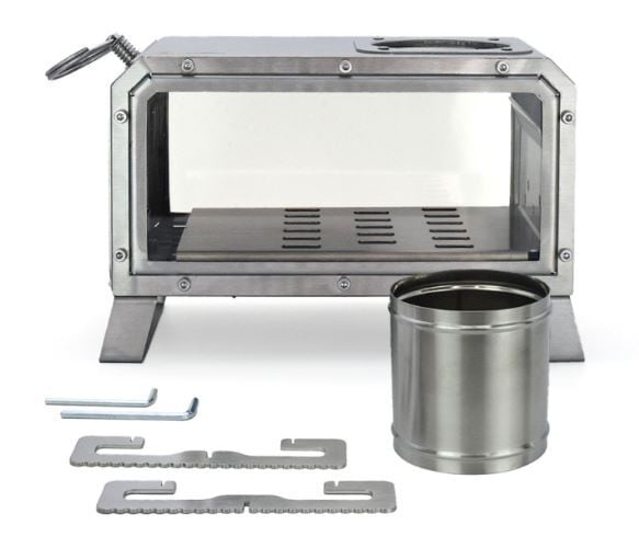 透明耐熱強化ガラス窓は、温度変化や外部の衝撃に強く、両側から焚き火鑑賞を楽しむことができます。